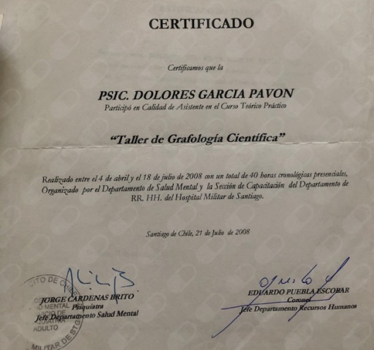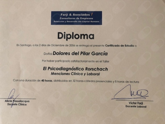 Soy Dolores García Pavón, psicóloga clínica titulada en la Universidad Gabriela Mistral. Durante más de 27 años he trabajado en consulta privada y en diversas instituciones de Santiago, acompañando a adultos y jóvenes en procesos de evaluación, diagnóstico y psicoterapia.